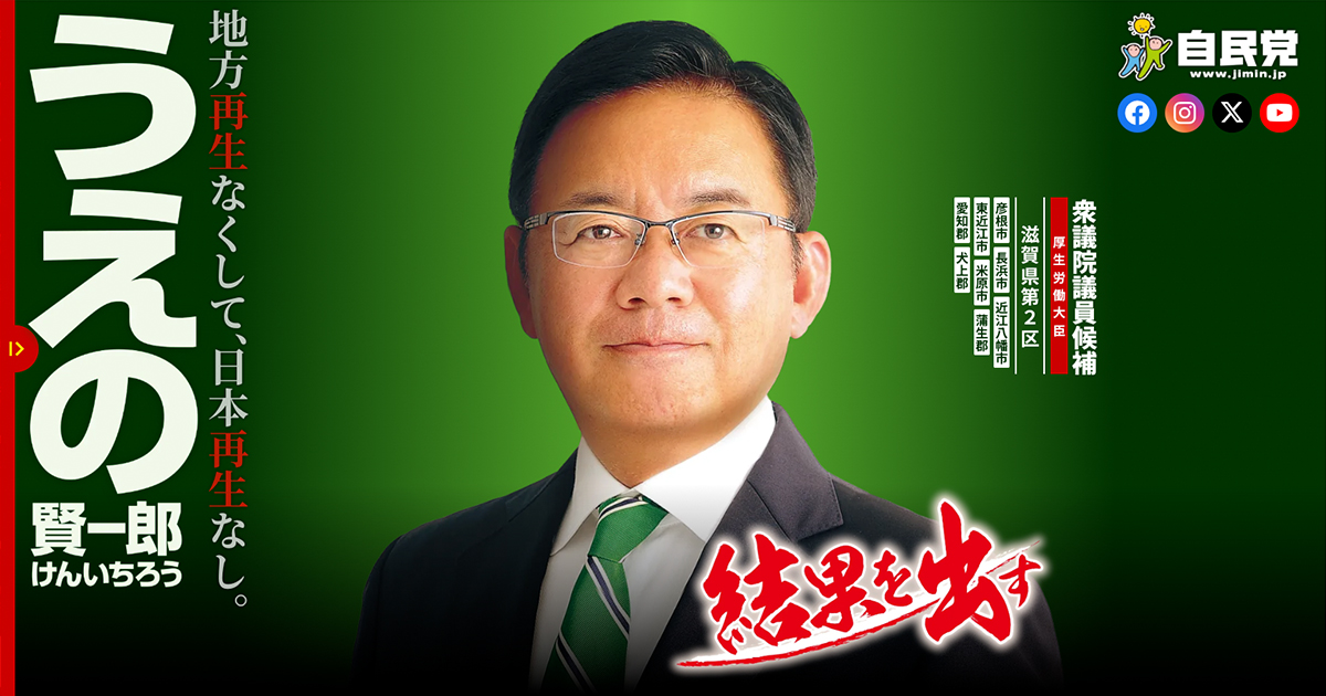 • 所属政党: 自由民主党(自民党)衆議院議員(滋賀県第2区選出)